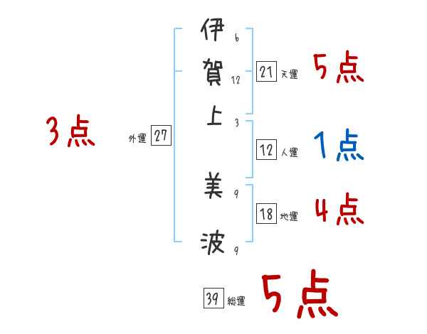 天運![]() | 伊賀上美波さんの天運は21画の5つ星!統率力がある。独立し成功する。名誉を手に入れる。 家系が持つ宿命的な運勢を表します。祖先から受け継いだ苗字ですので自分の力が及びません。家柄を象徴します。 |