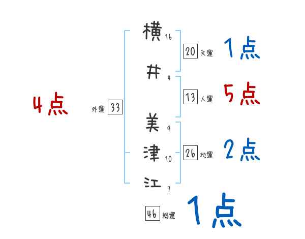 外運![]() | 横井美津江さんの外運は33画の4つ星!権力志向でプライドが高い。勇気があり運を切り開き成功する。 生活面を象徴する運勢です。外部から受ける影響力を表し、結婚運、家庭運や職場、環境への順応性を表します。 |
