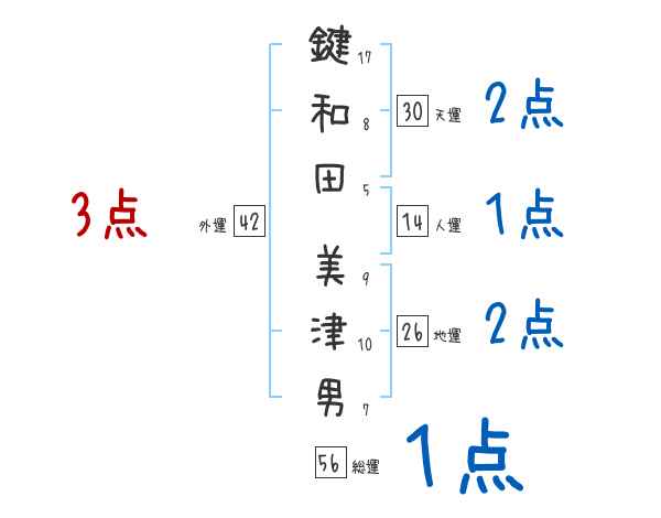 鍵和田美津男さんの画数の鑑定結果