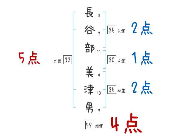 長谷部美津男さんの画数の鑑定結果