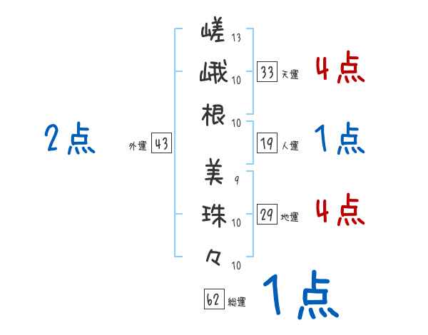 嵯峨根美珠々さんの画数の鑑定結果