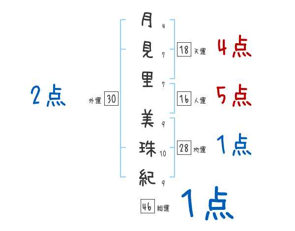 外運![]() | 月見里美珠紀さんの外運は30画の2つ星!浮き沈みの激しさに注意しましょう。 生活面を象徴する運勢です。外部から受ける影響力を表し、結婚運、家庭運や職場、環境への順応性を表します。 |