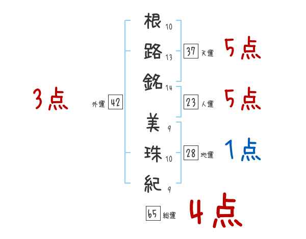 根路銘美珠紀さんの画数の鑑定結果