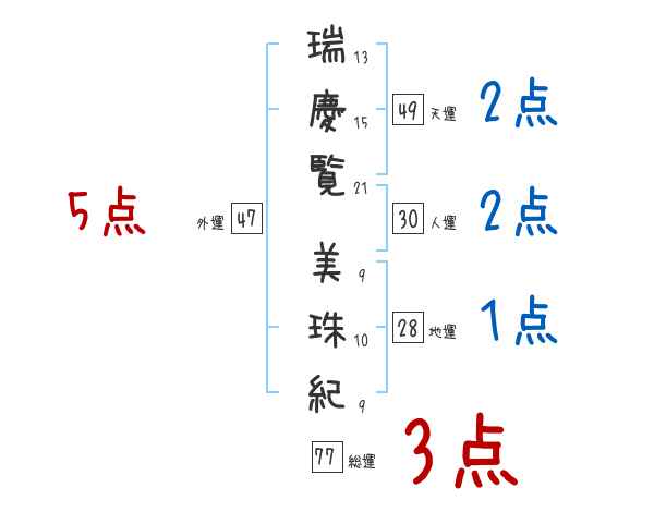 瑞慶覧美珠紀さんの画数の鑑定結果