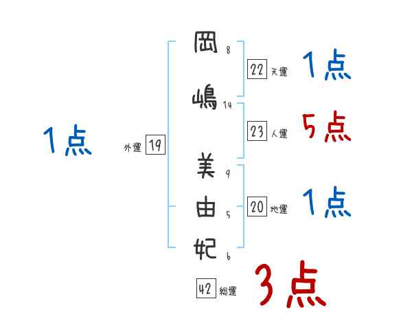 岡嶋美由妃さんの画数の鑑定結果