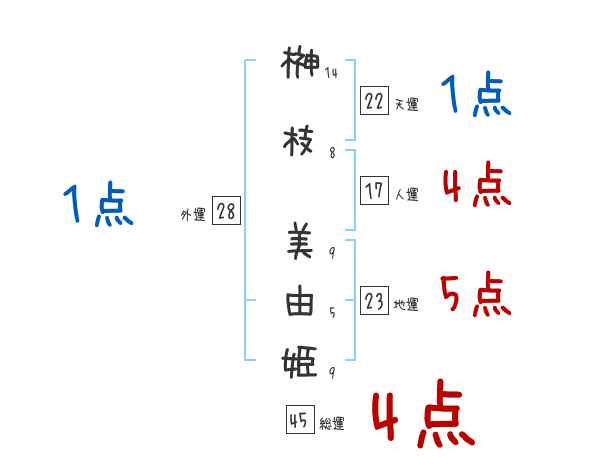 外運![]() | 榊枝美由姫さんの外運は28画の1つ星!家庭環境に注意。スポーツで活躍できる能力があるかも。 生活面を象徴する運勢です。外部から受ける影響力を表し、結婚運、家庭運や職場、環境への順応性を表します。 |