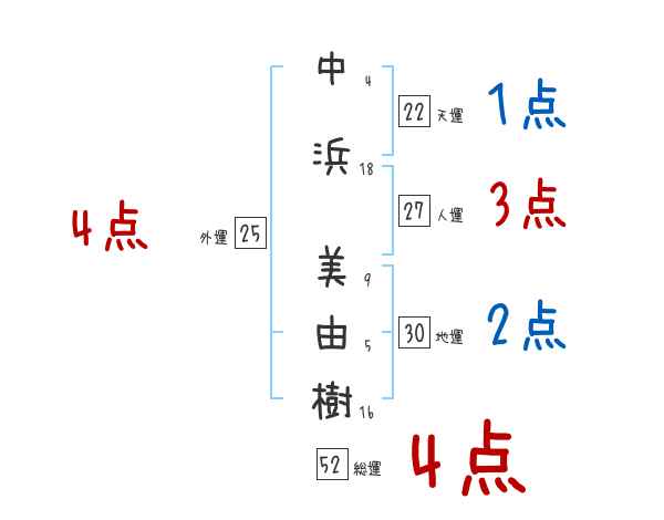 天運![]() | 中浜美由樹さんの天運は22画の1つ星!努力することが苦手ないっぽう手先が器用。芸術性にも優れる。 家系が持つ宿命的な運勢を表します。祖先から受け継いだ苗字ですので自分の力が及びません。家柄を象徴します。 |