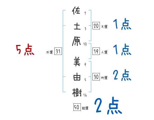 総運![]() | 佐土原美由樹さんの総運は50画の2つ星!浮き沈みが激しく不安定。しりすぼみに衰退しやすいので注意しましょう。 あなたの人生を表す1番重要な運勢です。生涯を通じて影響する総合運となり、主に50歳以降の晩年期に影響を及ぼします。 |