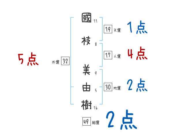 國枝美由樹さんの画数の鑑定結果