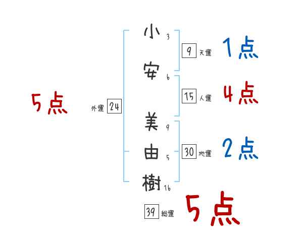 総運![]() | 小安美由樹さんの総運は39画の5つ星!社交性に優れ人望が厚い。人の上に立ち成功する。 あなたの人生を表す1番重要な運勢です。生涯を通じて影響する総合運となり、主に50歳以降の晩年期に影響を及ぼします。 |