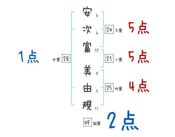 安次富美由規さんの画数の鑑定結果