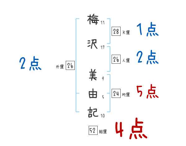 梅沢美由記さんの画数の鑑定結果