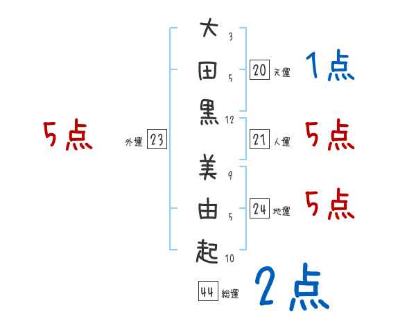 大田黒美由起さんの画数の鑑定結果