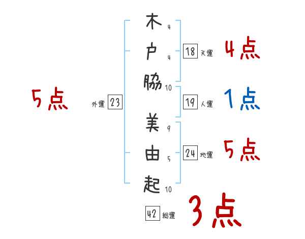 木戸脇美由起さんの画数の鑑定結果