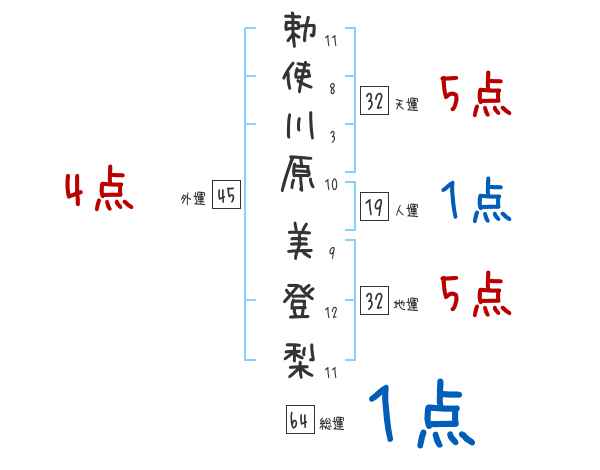 勅使川原美登梨さんの画数の鑑定結果