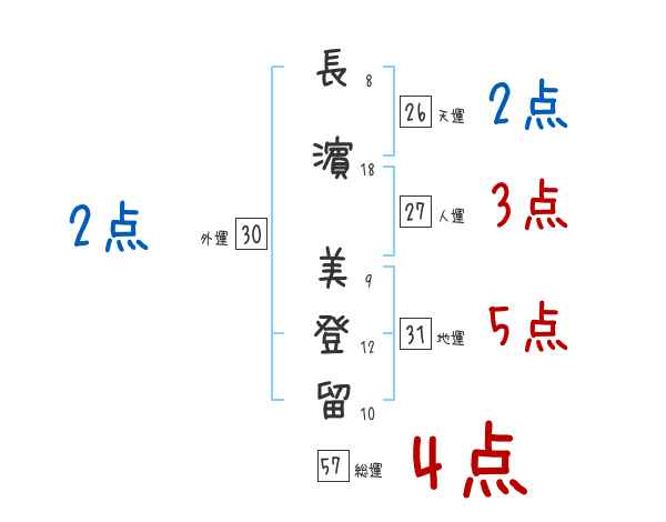 総運![]() | 長濵美登留さんの総運は57画の4つ星!向上心があり人望がある。地位を得る。 あなたの人生を表す1番重要な運勢です。生涯を通じて影響する総合運となり、主に50歳以降の晩年期に影響を及ぼします。 |
