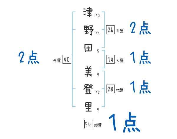 津野田美登里さんの画数の鑑定結果