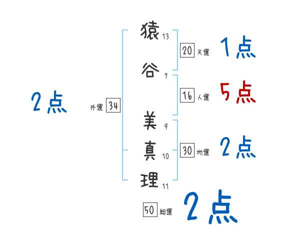 猿谷美真理さんの画数の鑑定結果