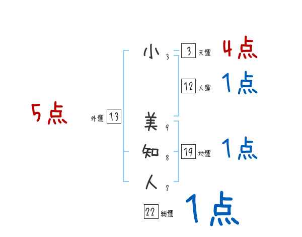 小美知人さんの画数の鑑定結果