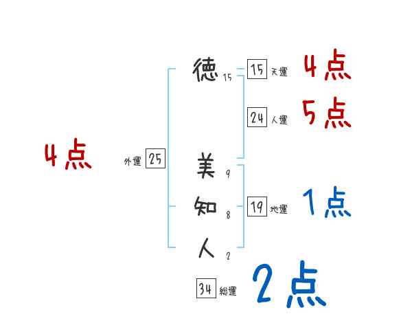 徳美知人さんの画数の鑑定結果