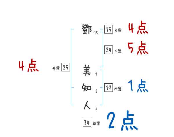 鄧美知人さんの画数の鑑定結果