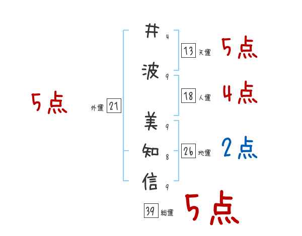 天運![]() | 井波美知信さんの天運は13画の5つ星!才能に恵まれ人気がある。名声を手に入れる。円満な人生。 家系が持つ宿命的な運勢を表します。祖先から受け継いだ苗字ですので自分の力が及びません。家柄を象徴します。 |