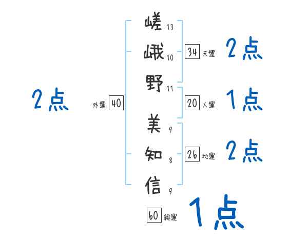 嵯峨野美知信さんの画数の鑑定結果