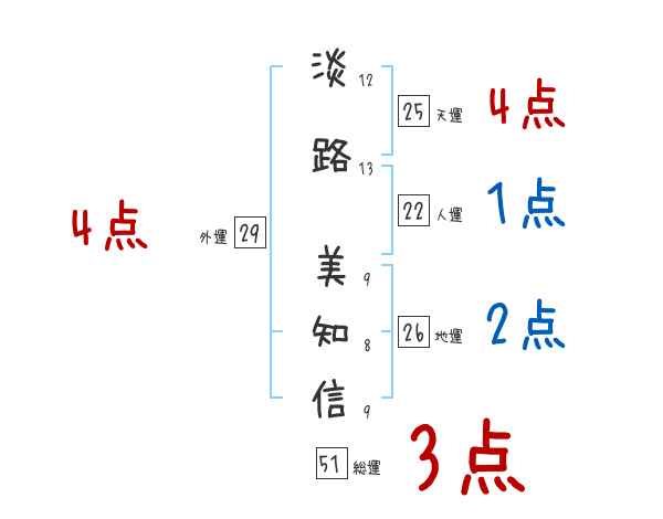 淡路美知信さんの画数の鑑定結果
