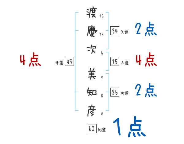 渡慶次美知彦さんの画数の鑑定結果