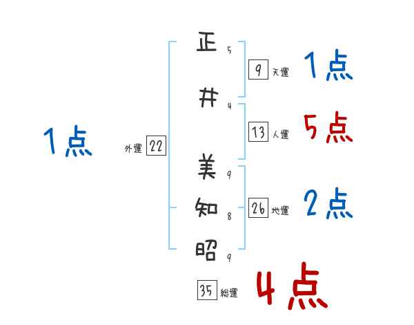 正井美知昭さんの画数の鑑定結果