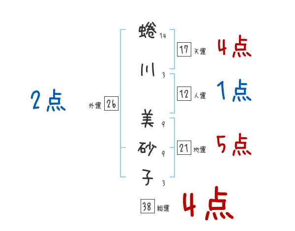 外運![]() | 蜷川美砂子さんの外運は26画の2つ星!波瀾万丈かも。信頼できる人を大事にしましょう。 生活面を象徴する運勢です。外部から受ける影響力を表し、結婚運、家庭運や職場、環境への順応性を表します。 |
