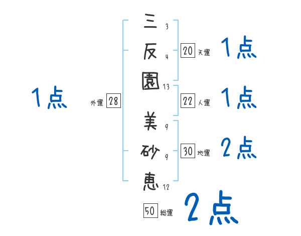 外運![]() | 三反園美砂恵さんの外運は28画の1つ星!家庭環境に注意。スポーツで活躍できる能力があるかも。 生活面を象徴する運勢です。外部から受ける影響力を表し、結婚運、家庭運や職場、環境への順応性を表します。 |