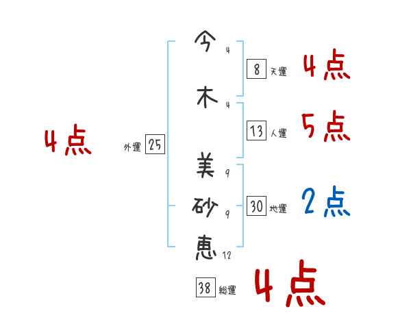 今木美砂恵さんの画数の鑑定結果