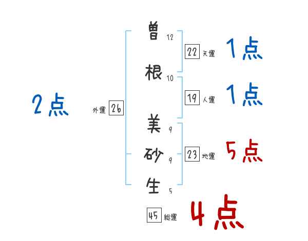 曽根美砂生さんの画数の鑑定結果
