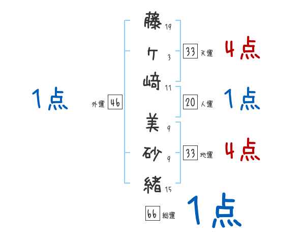 藤ヶ﨑美砂緒さんの画数の鑑定結果
