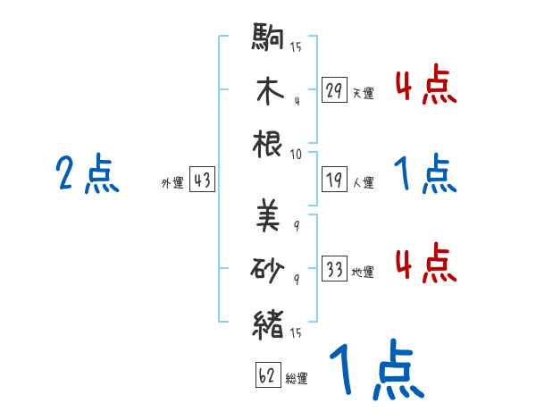 駒木根美砂緒さんの画数の鑑定結果