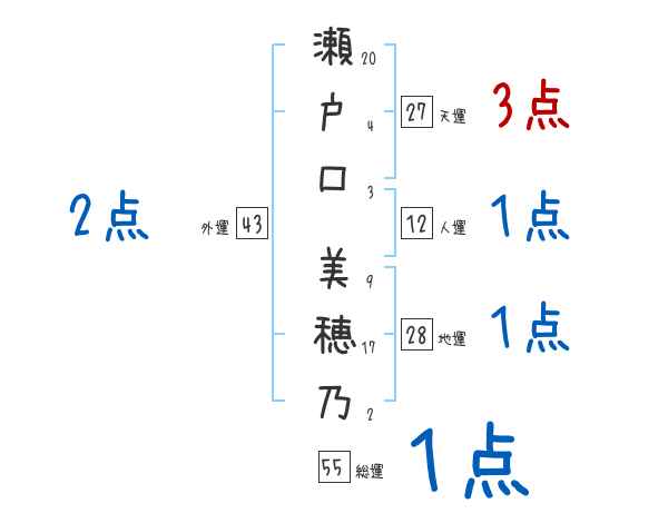 瀬戸口美穂乃さんの画数の鑑定結果