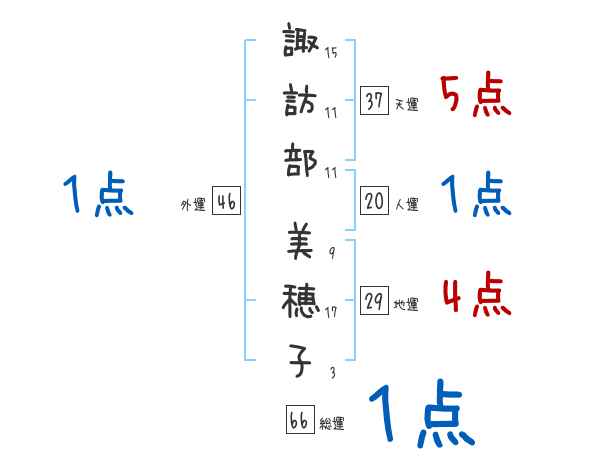 諏訪部美穂子さんの画数の鑑定結果