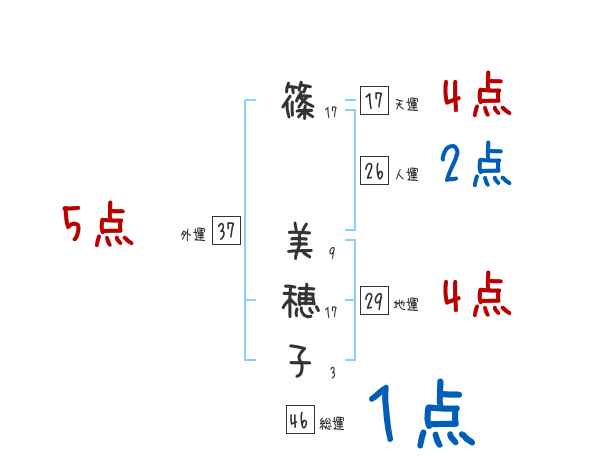 篠美穂子さんの画数の鑑定結果