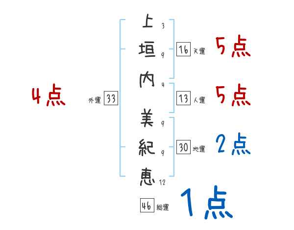 上垣内美紀恵さんの画数の鑑定結果