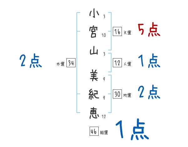 小宮山美紀恵さんの画数の鑑定結果