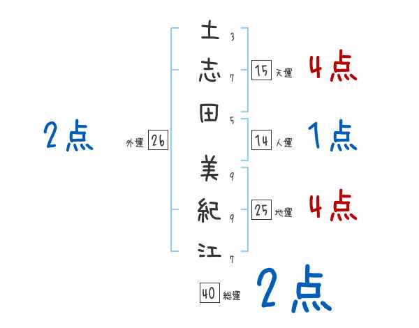 土志田美紀江さんの画数の鑑定結果