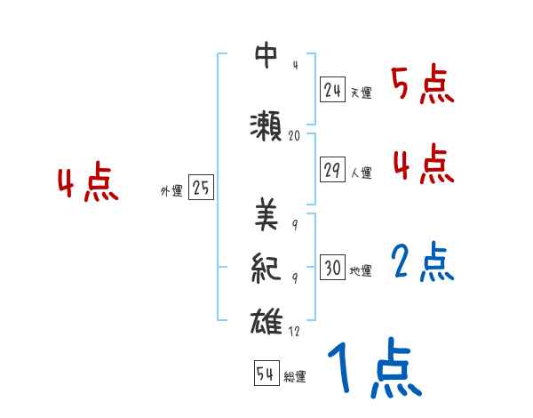 中瀬美紀雄さんの画数の鑑定結果