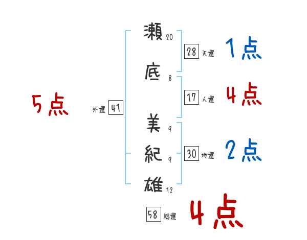 瀬底美紀雄さんの画数の鑑定結果