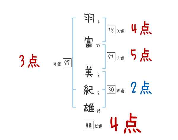 羽富美紀雄さんの画数の鑑定結果