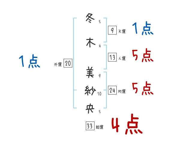 天運![]() | 冬木美紗央さんの天運は9画の1つ星!消極的で才能を発揮することが苦手なことも。周りの意見に耳を傾けましょう。 家系が持つ宿命的な運勢を表します。祖先から受け継いだ苗字ですので自分の力が及びません。家柄を象徴します。 |