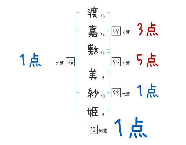 渡嘉敷美紗姫さんの画数の鑑定結果