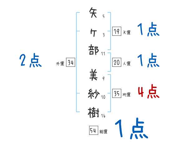 矢ヶ部美紗樹さんの画数の鑑定結果