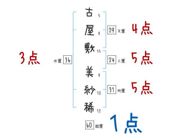 古屋敷美紗稀さんの画数の鑑定結果