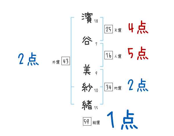 濱谷美紗緒さんの画数の鑑定結果